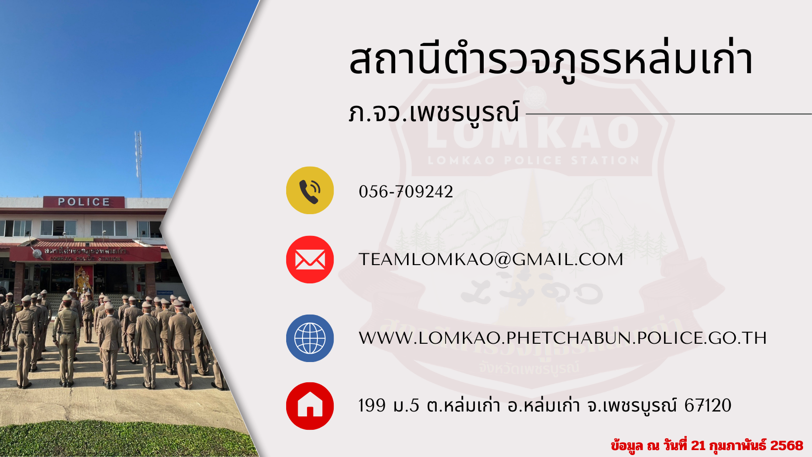 ส.ต.อ.เกริกกาน ชาญศรี ผบ.หมู่ (ป.) สภ.หล่มเก่า , ส.ต.ท.ภคพล ราศรีชัย ผบ.หมู่ (ป.) สภ.หล่มเก่า ผู้รับผิดชอบ ตอบกลับภายใน 5 นาที
