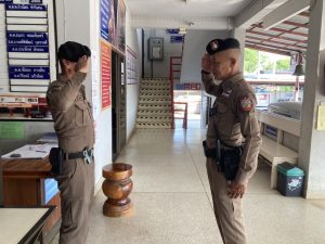 ร.ต.อ.เรวัตร ยอดมา รองสวป.ฯ(ร้อยเวร 20) เรียกแถวสายตรวจ แสดงความเคารพธงชาติ สวดมนต์ไหว้พระ ท่องอุดมคติตำรวจ ชี้แจง ภารกิจข้อราชการ อบรมระเบียบวินัย ตรวจเครื่องแต่งกาย สะอาด เรียบร้อย ทรงผมตัดสั้นให้ถูกต้องตามระเบียบ