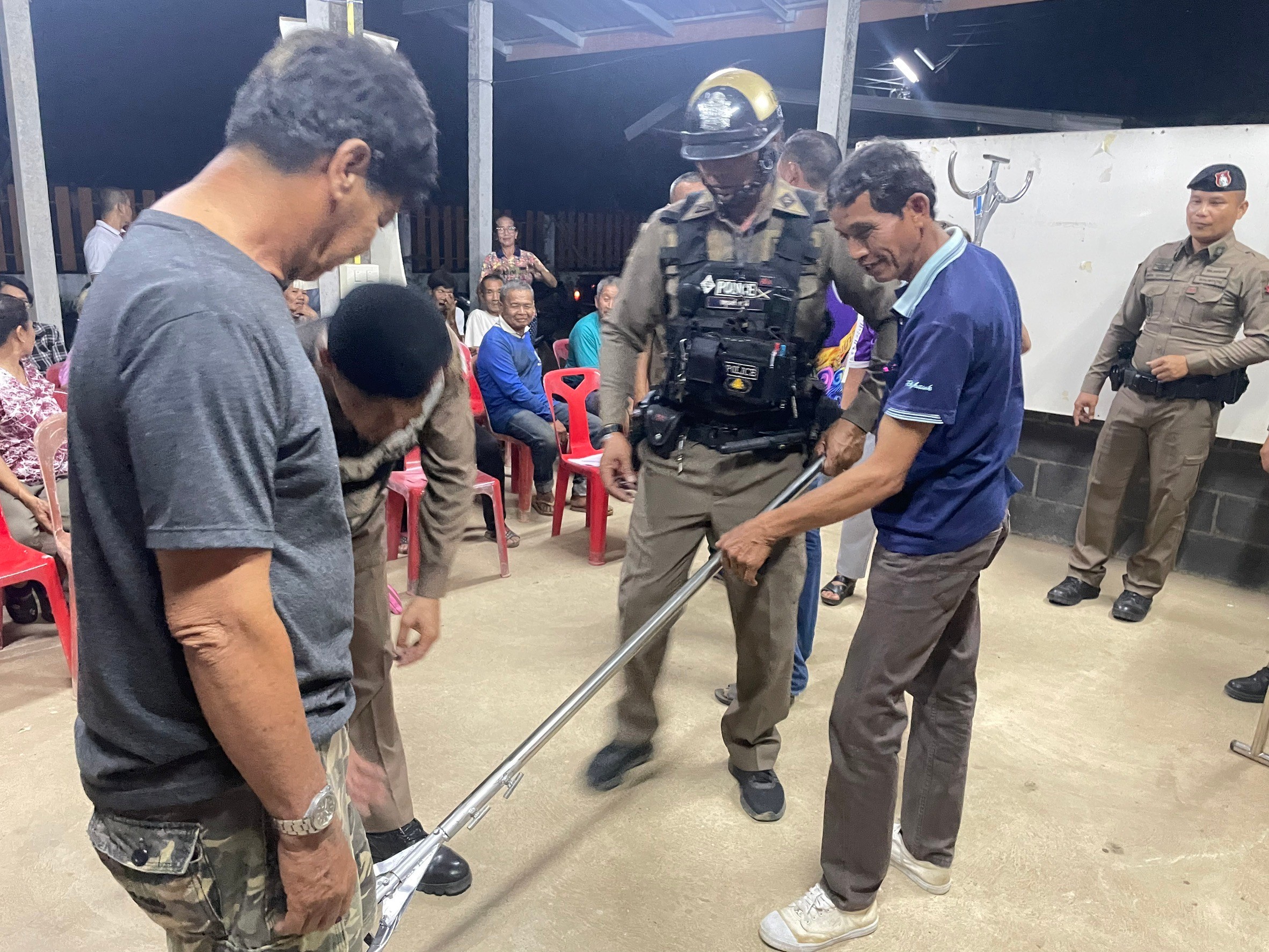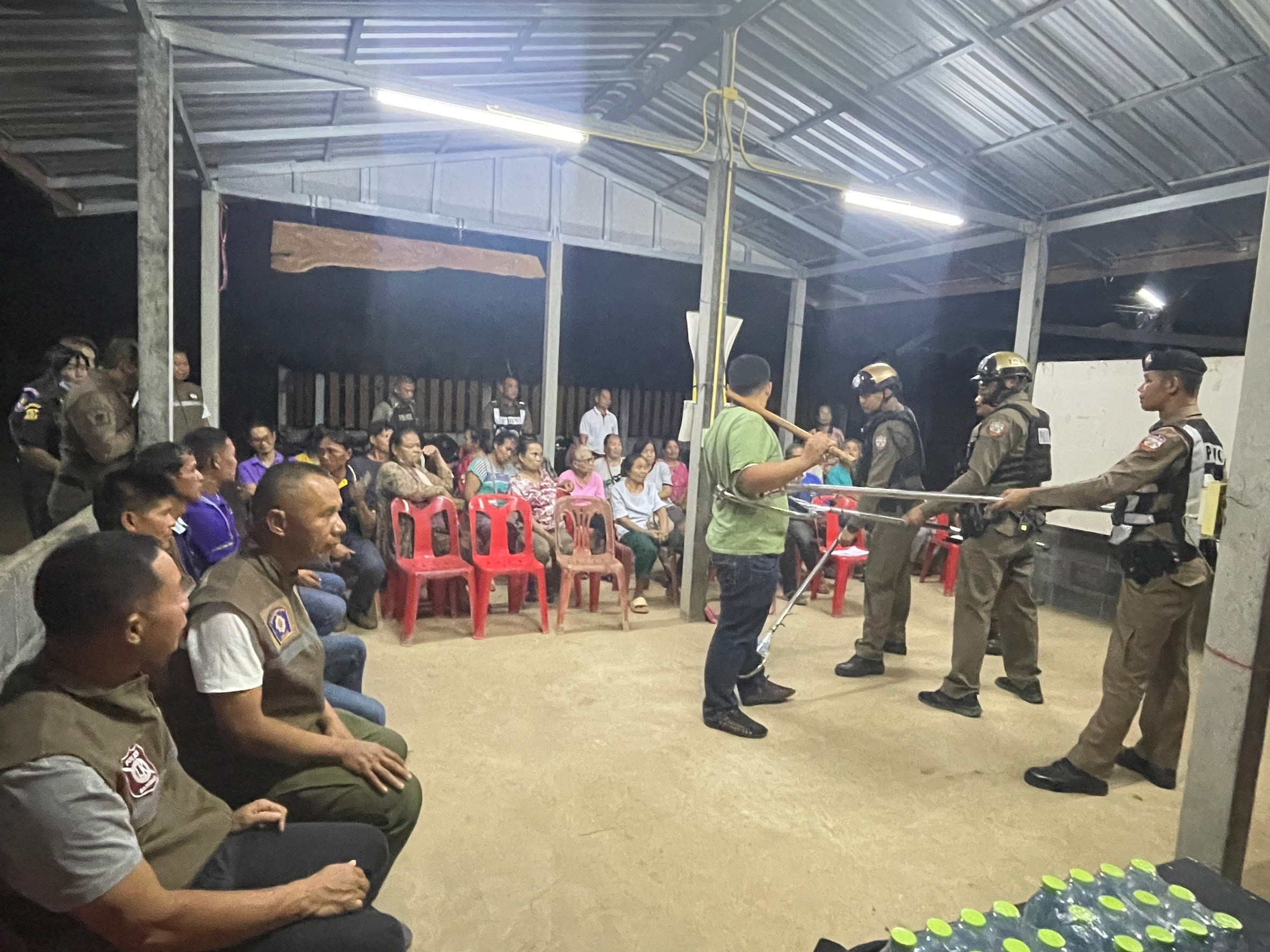พ.ต.อ.ธีรศักดิ์ สารภูษิตสันต์ ผกก.สภ.หล่มเก่า พร้อมชุดปฏิบัติการสายตรวจ จยย.101 จยย.102 ของ สภ.หล่มเก่า สาธิตและถ่ายทอดการใช้ไม้ง่าม ในการควบคุมผู้ป่วยจิตเวชให้แก่หัวหน้าส่วน ผู้นำชุมชน ตำบลนาเกาะ อ.หล่มเก่า จ.เพชรบูรณ์ เพื่อแสวงหาความร่วมมือบูรณาการในการป้องกันอาชญากรรมในพื้นที่ตำบลนาเกาะ และซักซ้อมแผนเผชิญเหตุกรณีบุคคลคลุ้มคลั่งในพื้นที่เรื่อง “หนี ซ้อน สู้“ ณ อบต.นาเกาะ ต.นาเกาะ อ.หล่มเก่า จ.เพชรบูรณ์