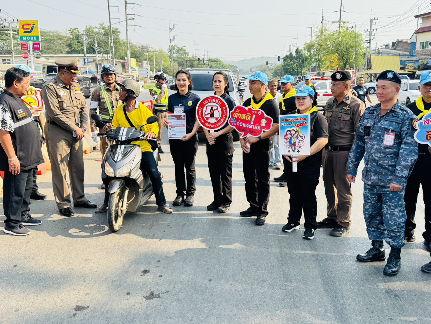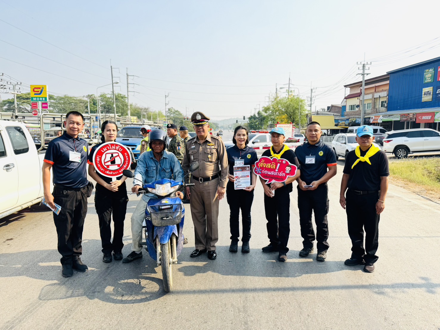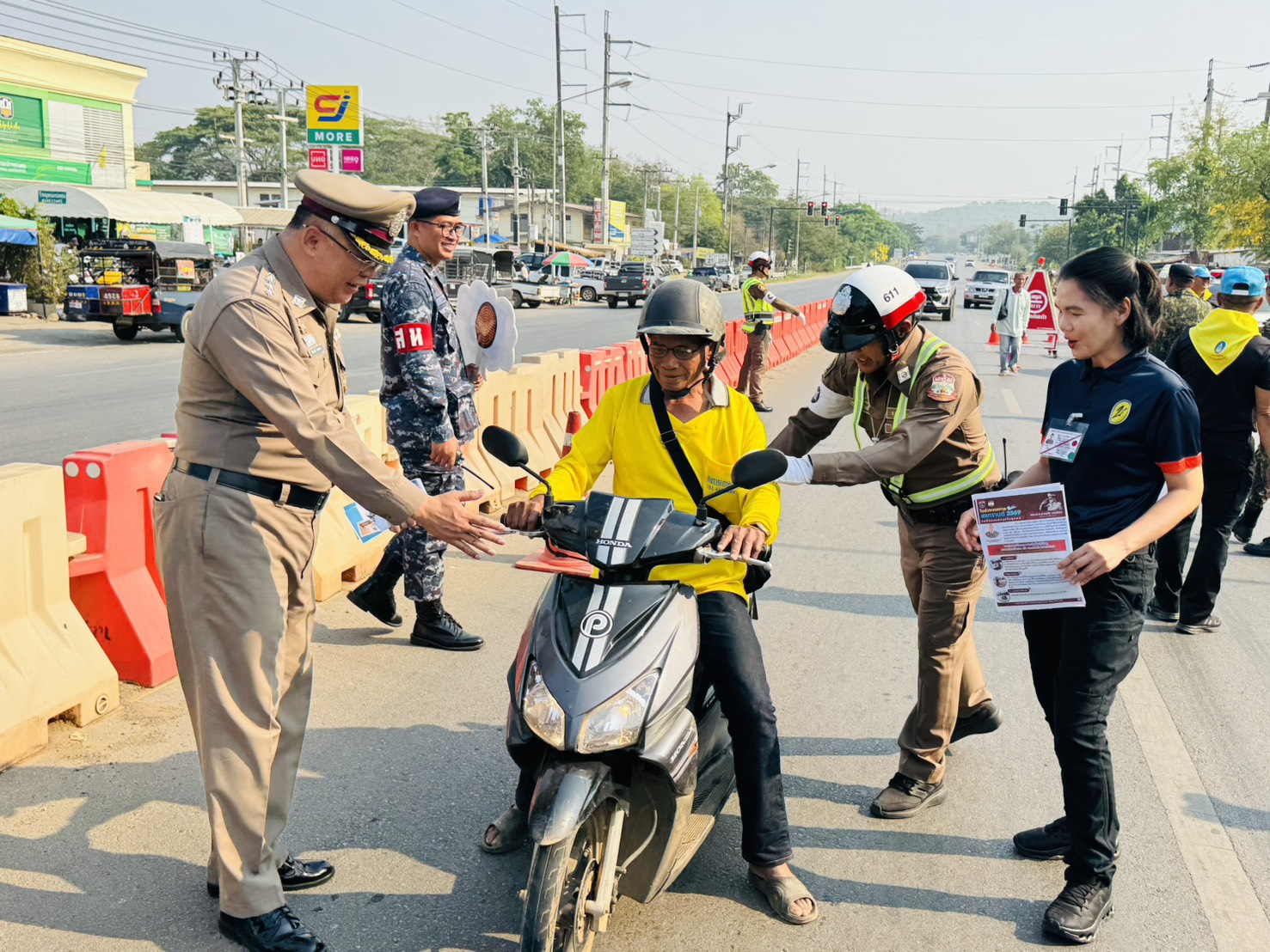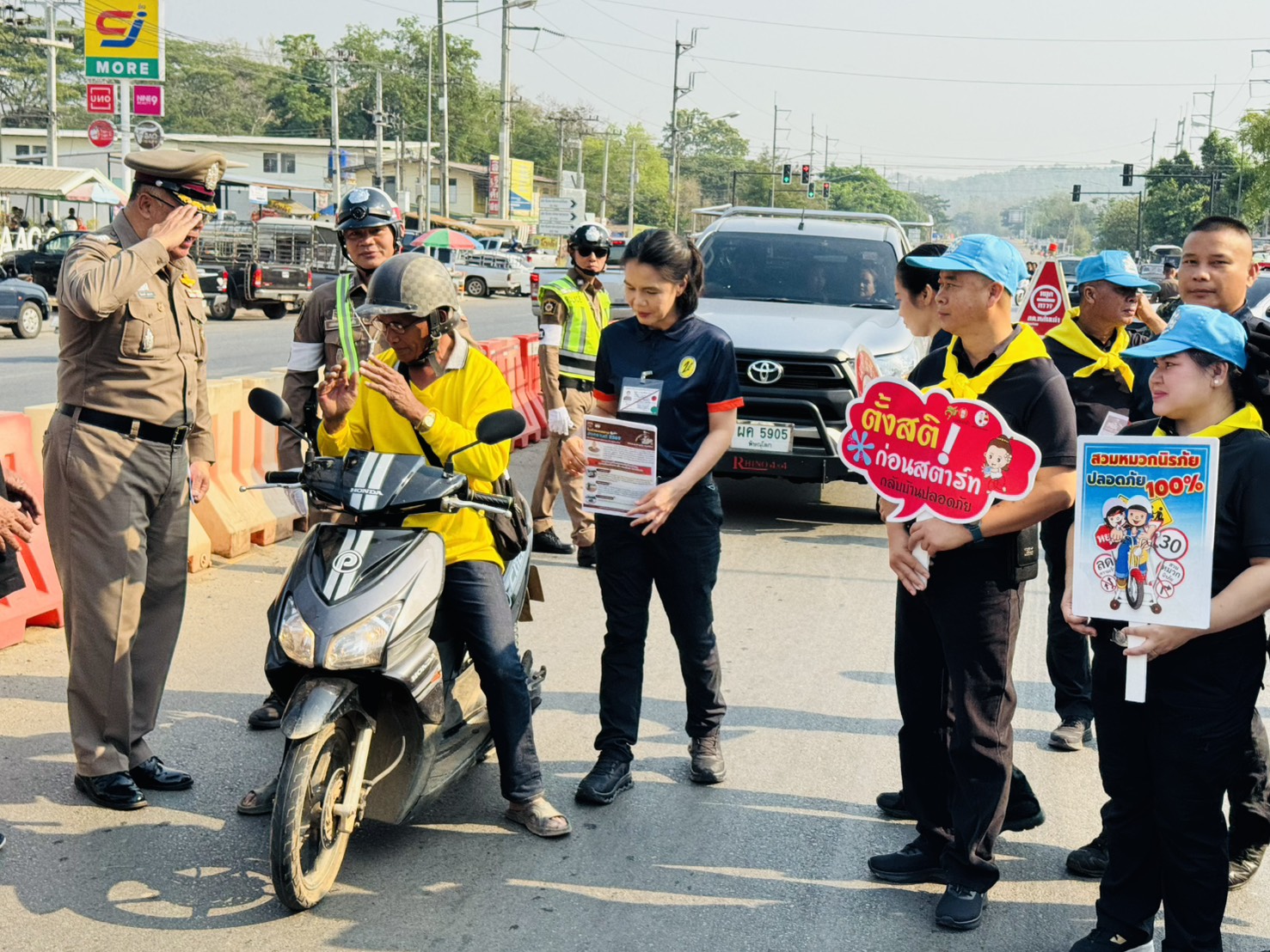 • มอบหมวกนิรภัยให้ผู้ขับขี่รถจักรยานยนต์