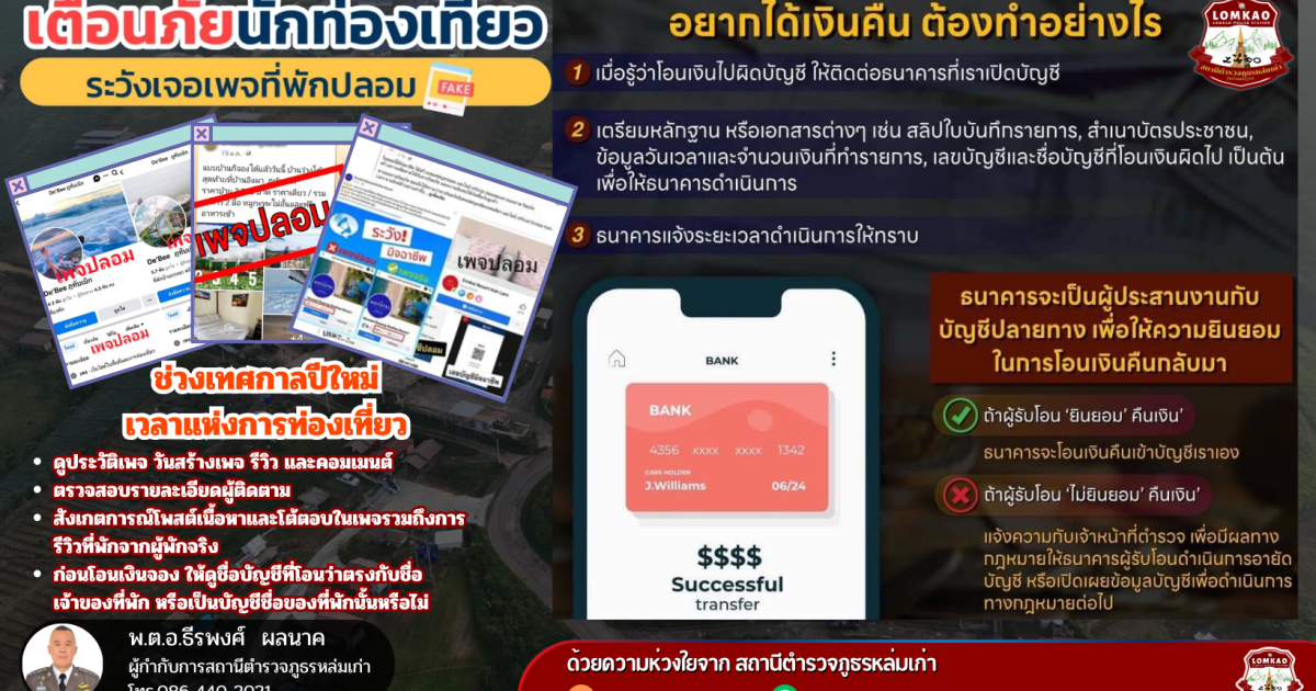 ควรโอนเข้าบัญชีชื่อเดียวกับที่พัก หรือแพลตฟอร์มที่มีระบบคุ้มครองผู้จอง