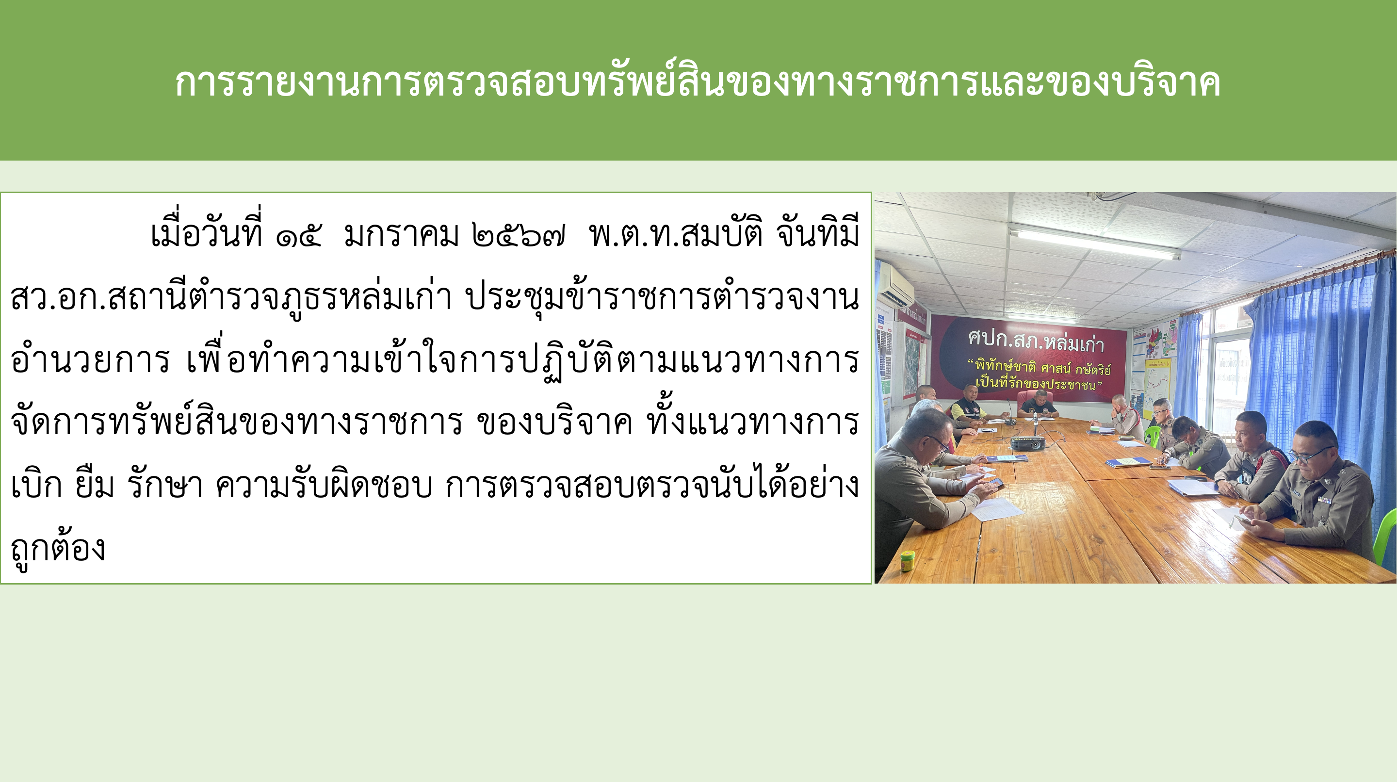 การรายงานการตรวจสอบทรัพย์สินของทางราชการและของบริจาค