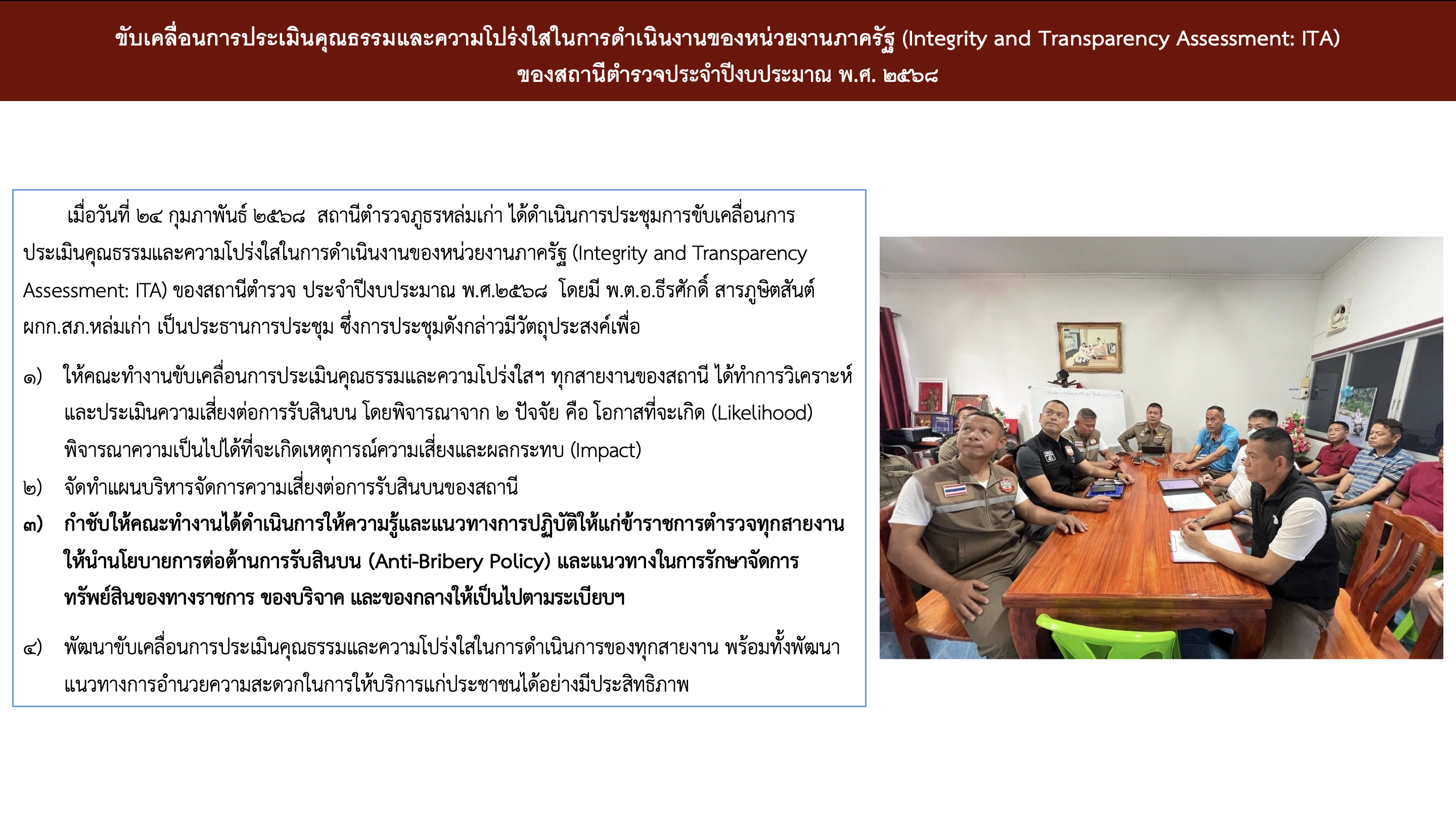 ภายใต้การอำนวยการและสั่งการของ พล.ต.ต.สารนัย คงเมือง ผบก.ภ.จว.เพชรบูรณ์